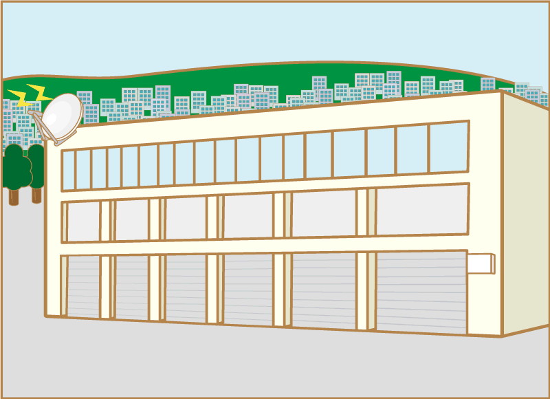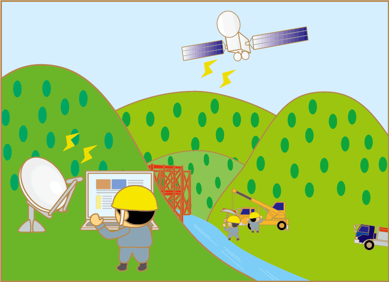 ダム工事など深い山の中の現場では通信回線の確保が困難です。